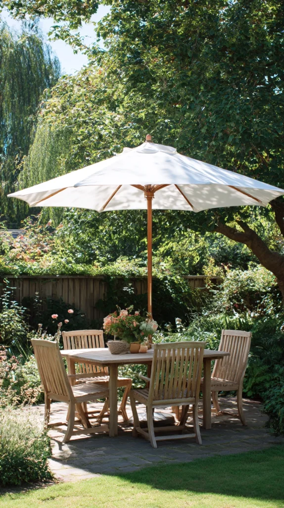 A large market umbrella β 2.5 to 3 metres in diameter β positioned over the primary outdoor seating or dining area is the fastest and most versatile shade solution available to any backyard. It requires no installation, no permanent structure, and no commitment beyond the purchase, and a quality umbrella in the right position makes a genuinely shaded outdoor dining table possible from midmorning through the hottest part of the afternoon.