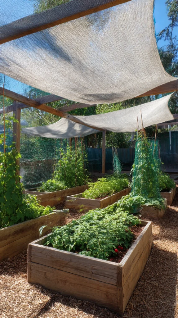 Style tip: Use 30β40 percent density shade cloth rather than the 70β80 percent versions sold for privacy screens. Vegetables and salad crops need light as well as shade β too dense a shade cloth reduces photosynthesis and produces the leggy, pale growth that indicates a light-starved plant rather than protecting the plant from heat. The goal is to reduce heat intensity while maintaining adequate light, and the lower density cloth achieves this balance.