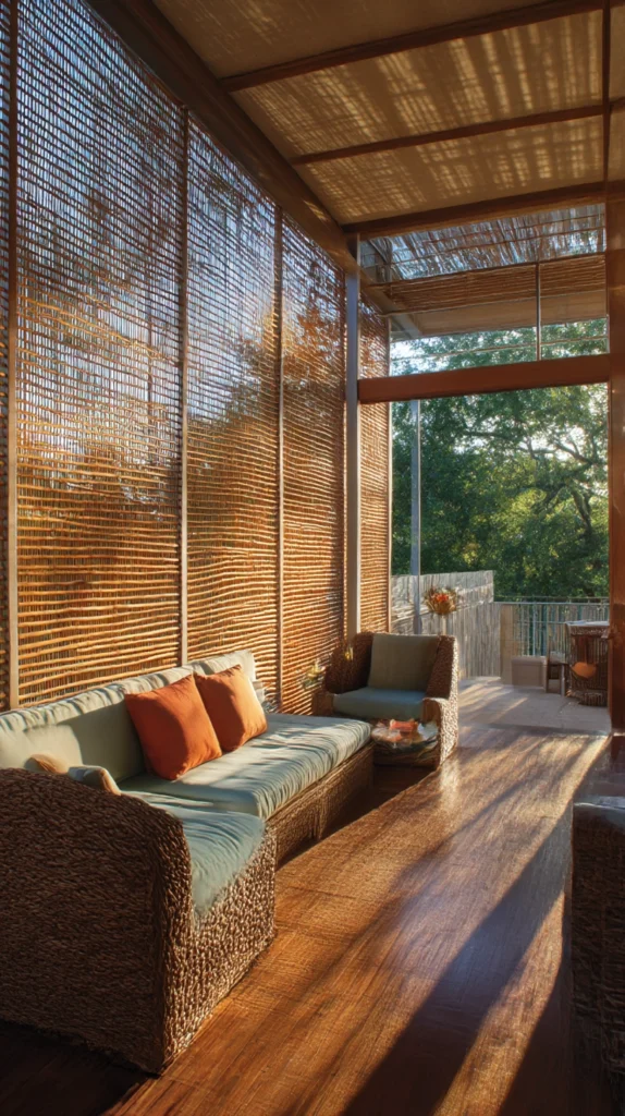 A bamboo roll screen or bamboo fence panel fixed along the side of the outdoor seating area that receives the most direct afternoon sun creates a vertical shade wall that blocks the low-angle sun of late afternoon β the most difficult sun to shade against with overhead structures β while maintaining airflow through the gaps in the material. It is the right shade solution when the problem is not overhead sun but the sun that enters the space sideways in the hours before sunset.