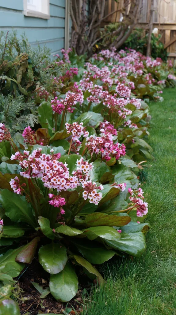 Often called elephant ears for its enormous, leathery leaves, bergenia is one of the most indestructible plants in cultivation. It tolerates clay, shade, drought, and cold with equal indifference, making it a genuine all-rounder for difficult sites.