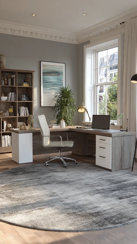 Sometimes you don’t need a wall to define a space; you just need a change in texture. Placing a distinct rug under your office area “locks” that furniture into its own zone.