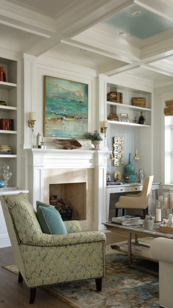 Style Tip: This is called “zoning.” Don’t fill every cubby with books. Leave about 30% of the shelves empty or filled with clear glass objects to allow light to pass through. This keeps the room from feeling “boxed in.”