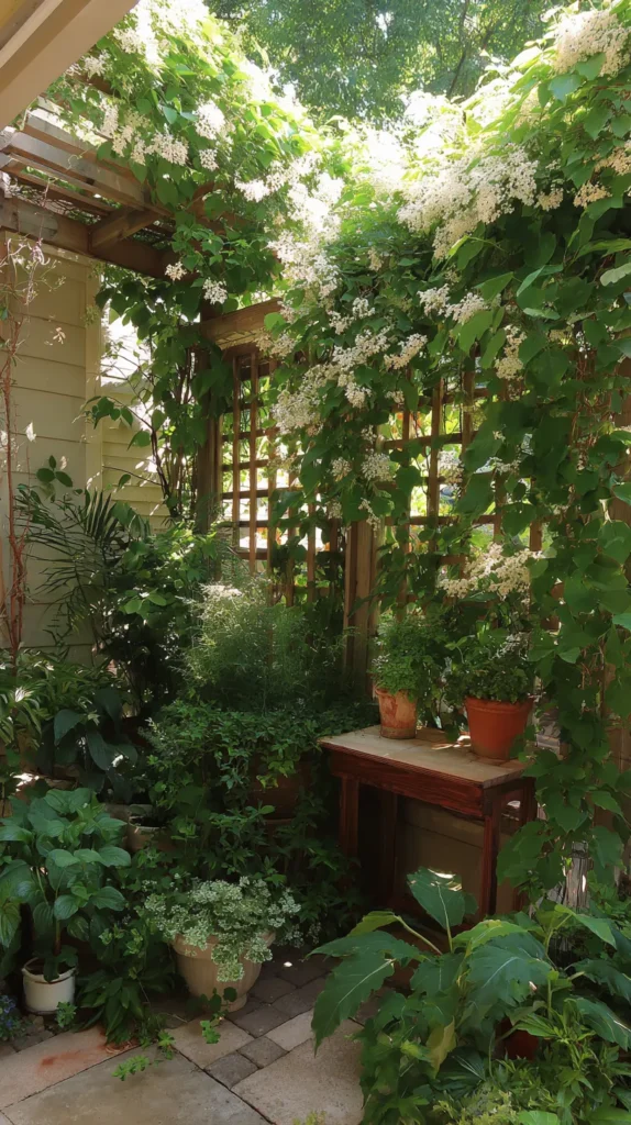 Surround your screen porch with raised planting beds, container gardens, and climbing vines that create the feeling of sitting inside a garden rather than simply looking at one. Train flowering vines like clematis, jasmine, or morning glories along the screen walls, creating living wallpaper that changes with the seasons.