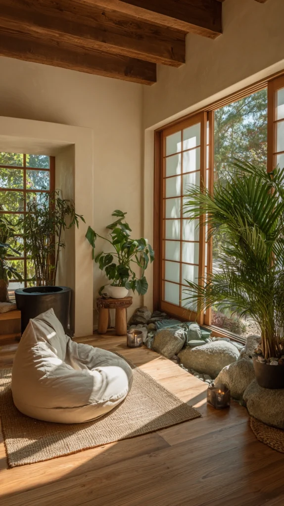 For those seeking a space for mindfulness, the interior should be stripped back to the essentials. A bamboo floor mat, a meditation cushion (zafu), and a small water feature are all you need. Keep the walls a soft, neutral plaster or a warm white. Use sliding shoji screens instead of traditional doors if possible to save space and control the flow of natural light. This interior is about the luxury of empty space.