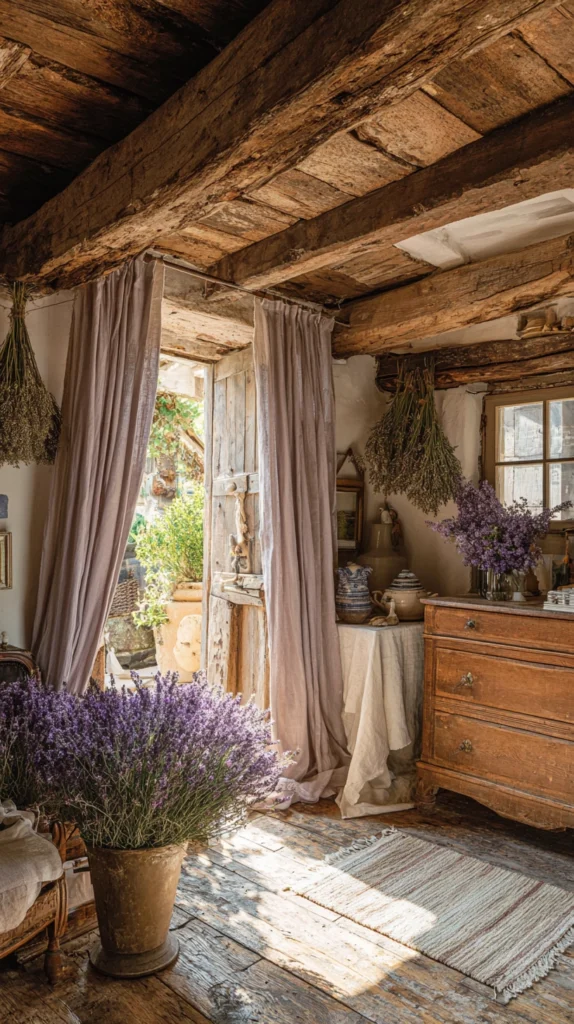 A repurposed vintage dresser can serve as both a focal point and a storage unit for craft supplies. Use soft lavender accents and dried herb bundles hanging from the rafters to create a multi-sensory experience that feels like a trip to Provence.