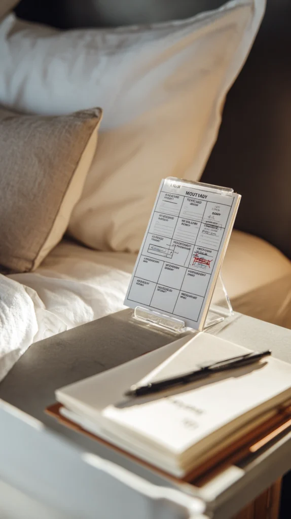 A weekly fixture card printed at home costs pennies in ink and paper. A small card holder or wooden stand on the bedside table ($3β$8) keeps it upright and visible rather than flat and ignorable. Design the card in the colours of your supported team for a small additional layer of detail that costs nothing beyond a few extra minutes.