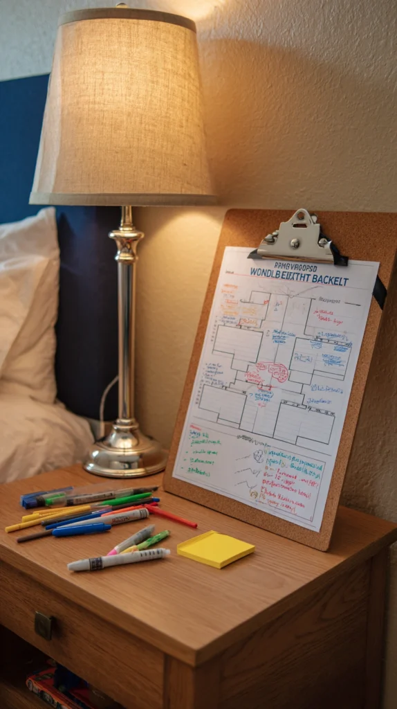 Print a full tournament bracket and pin it to a small corkboard or clipboard leaned against the bedside lamp. Update it each morning after the previous day’s results. It sounds minor and functional, but a bracket that is being actively filled in over the course of a month becomes a document of the tournament as you experienced it β and looking at it first thing in the morning and last thing at night keeps you connected to the competition even on days when you cannot watch.