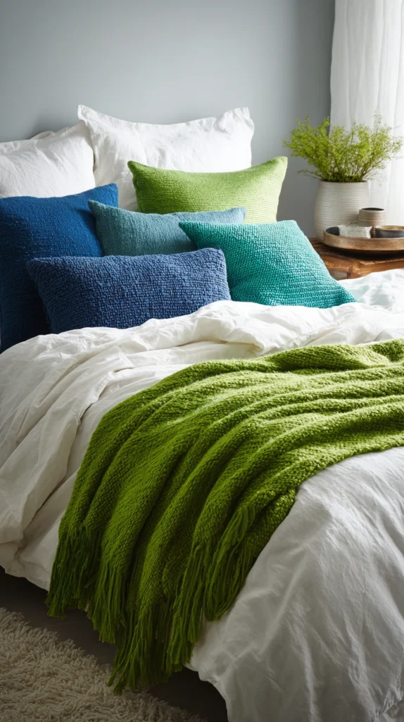 6. The Colour-Themed Throw and Cushion Swap