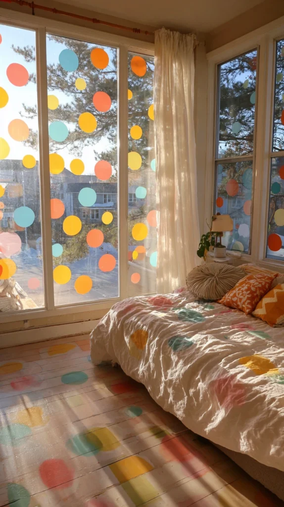 Style tip: Apply decals to the lower half of the window rather than centred or at the top. The lower position catches more of the light that enters from outside and creates a coloured glow on the floor and lower walls that disappears when the lights come on in the evening β a subtle detail that rewards noticing.