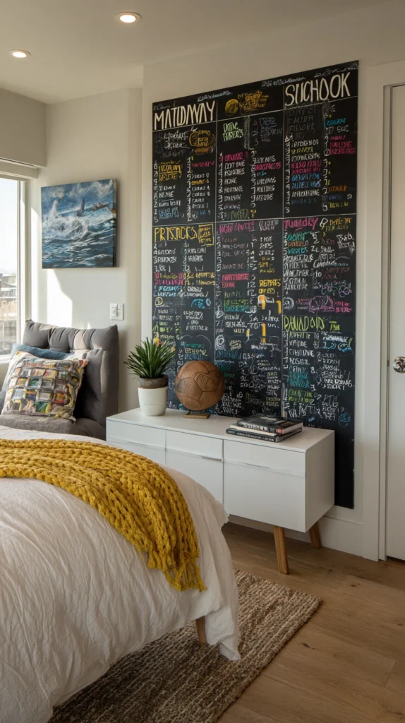 A small chalkboard or blackboard β leaned against the wall on the dresser, the windowsill, or a shelf β updated daily with the day’s fixtures, kickoff times, and channels becomes the mission control of a tournament bedroom. It is functional and decorative simultaneously, requires no wall fixings, and gives visitors to the room an immediate sense of what the month is about.